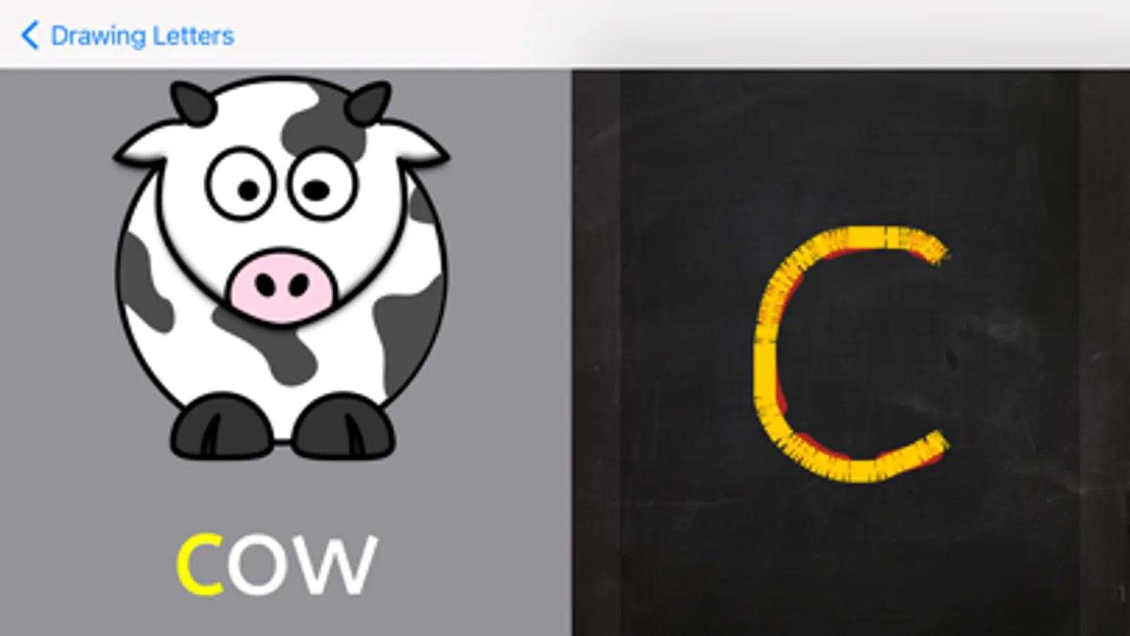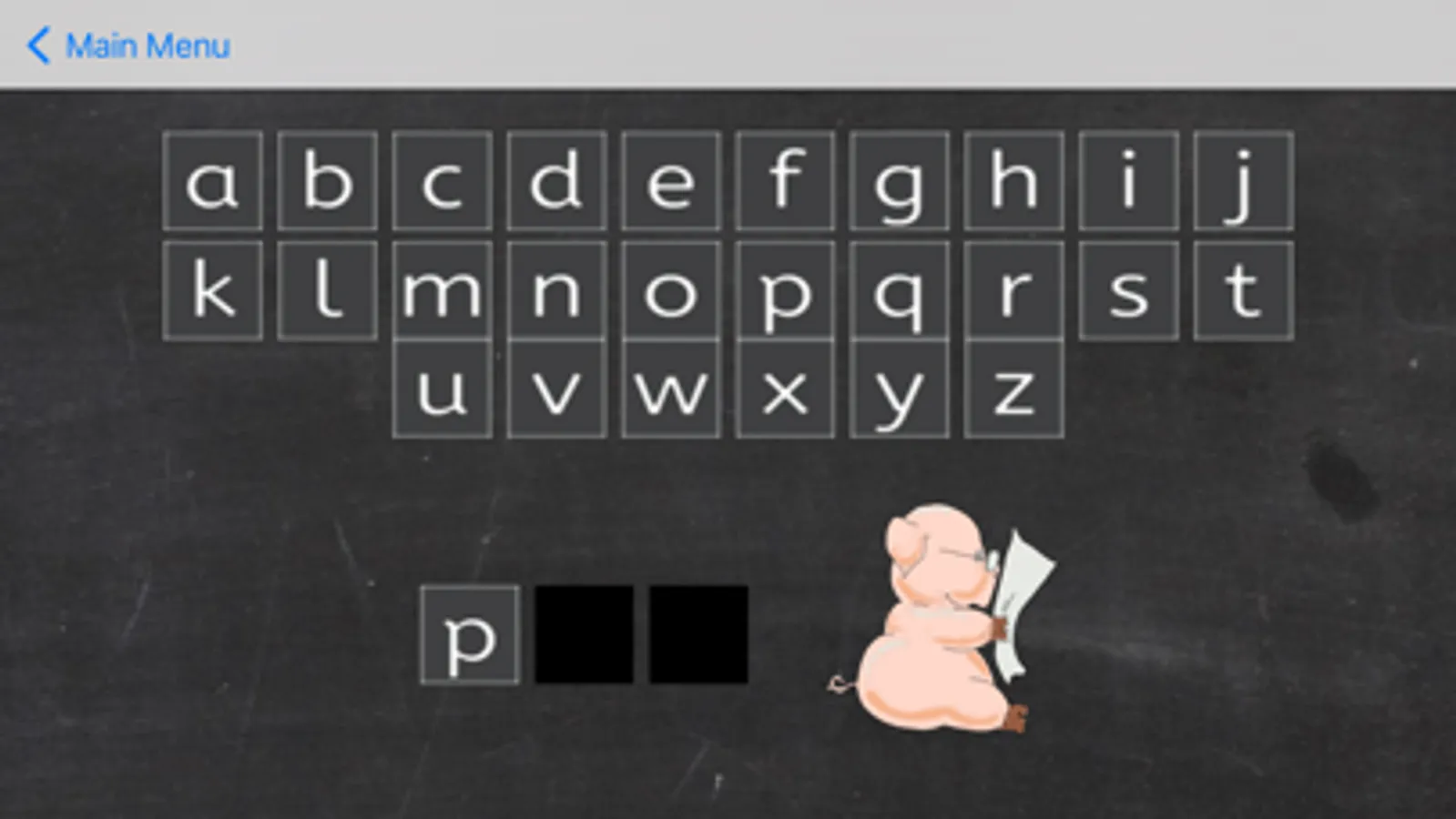 In the next section, the young learner sees a picture of a familiar object or animal and speaks to confirm the name. The child can then select the letters indicated at the centre of the screen; the letters are spoken in synthetic phonics to aid with spelling the word. When the child has picked the correct letter in the proper position, they can choose subsequent letters until they have finished spelling the whole word.