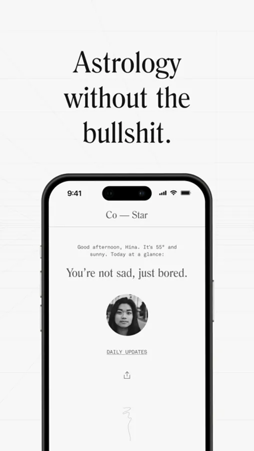 Co–Star is the astrology app that deciphers the mystery of human relations through NASA data and biting truth. 2x App of the Day. Featured in the New York Times, Vogue, Vanity Fair, and more.