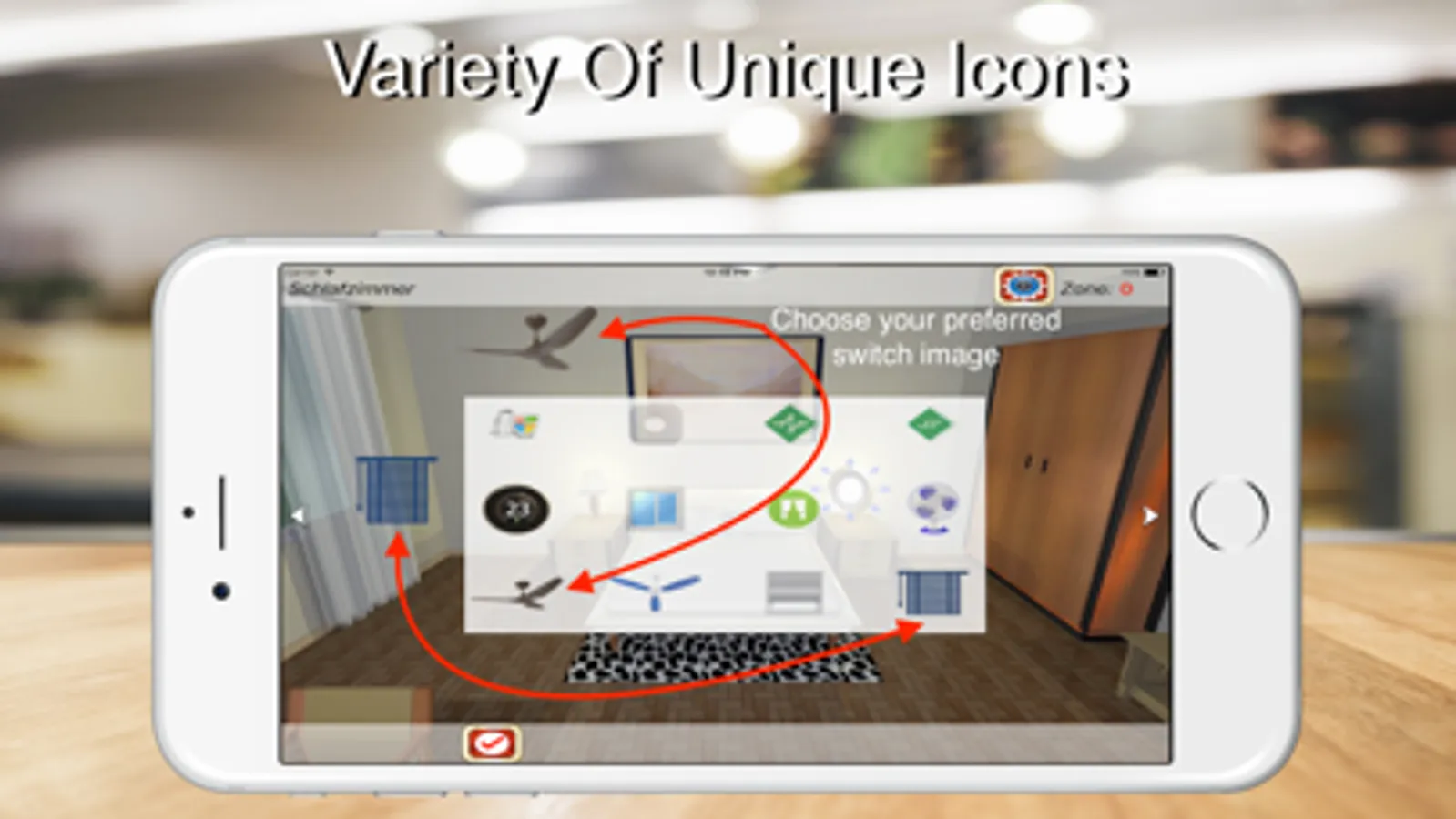 WYSIWYG (What You See Is What You Got) technology allow you to use your iPhone/iPad camera to add real rooms / devices photos / skins to be controlled by a simple touch. VR (Virtual Reality) simulate the exact actions of the real push button wall / in-line switches in your room with a set-up easier than setting a channel on your conventional TV.