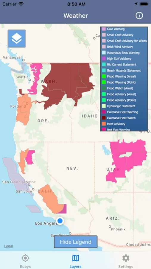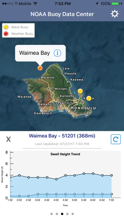 Please remember that this app can only show data the buoy collects. Not all buoys collect wave data. This app will display all data collected by a buoy.