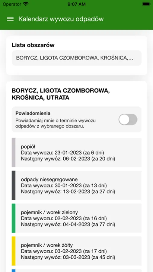 Aplikacja przypomni o terminie odbioru poszczególnych odpadów, poinformuje o zasadach prowadzenia selektywnej zbiórki odpadów, powiadomi o aktualnościach związanych z tą tematyką. Moduł umożliwia dodatkowo wysyłanie reklamacji odnośnie braku odbioru odpadów, uszkodzonego pojemnika lub innych sytuacji.