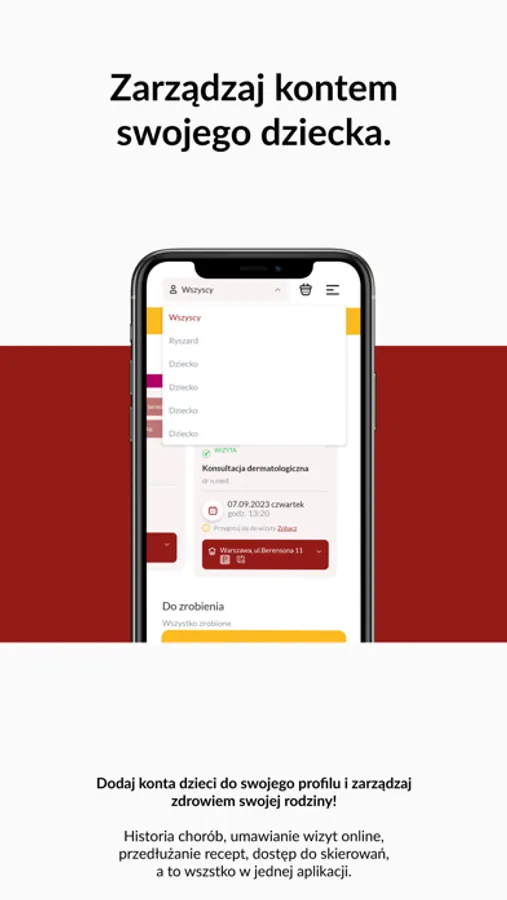 - umawiania i odwoływania wizyt dla Ciebie i rodziny