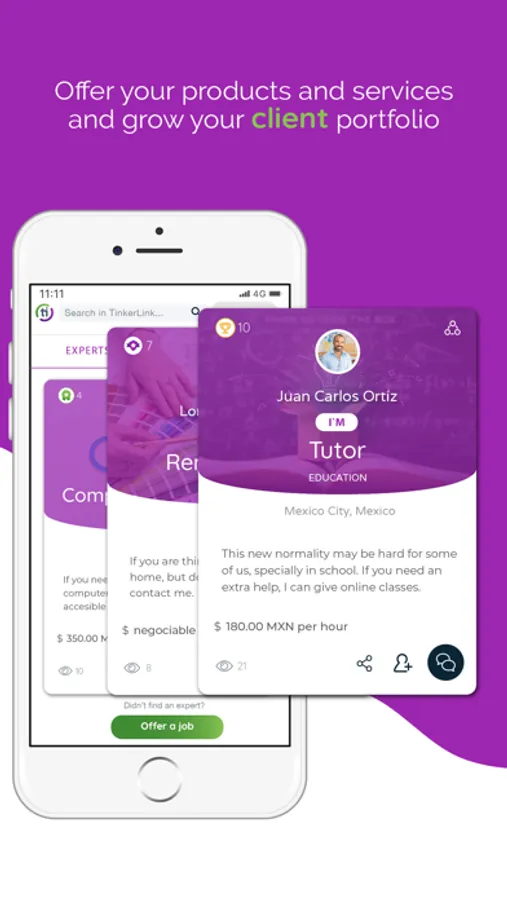 Being part of TinkerLink is easy. Create your profile, verify it, offer your services and connect with your future clients or experts, totally for FREE!