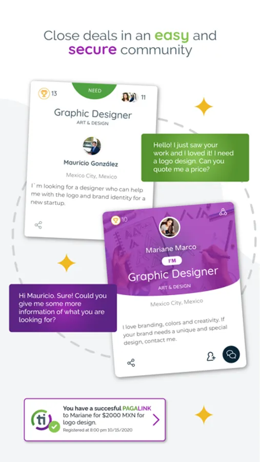 Connect in real time and FREE OF CHARGE with the expert to detail what you need and consult all your doubts. Close the deal directly and agree on how and when the service will be performed through the app's chat.