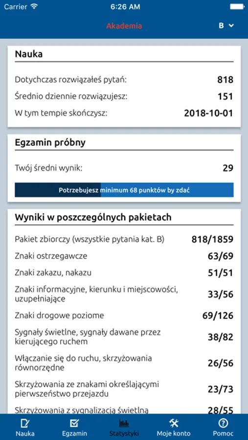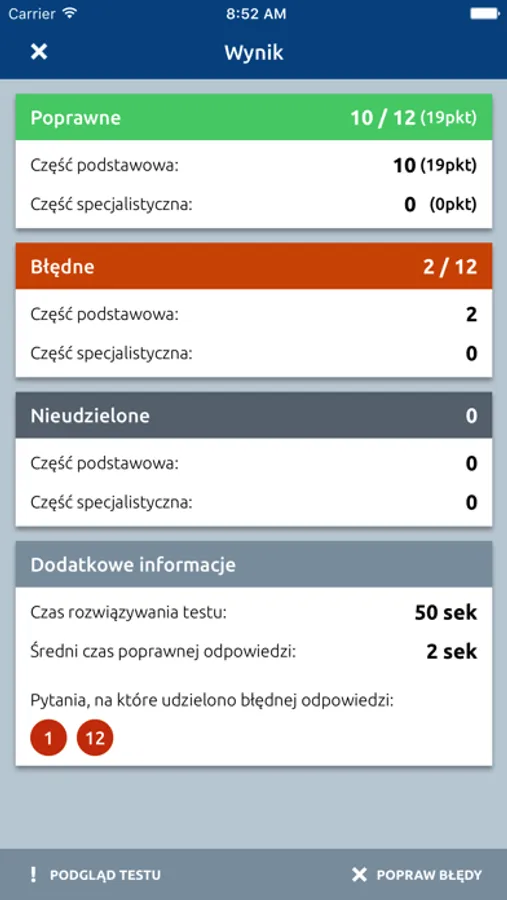 - Dwa tryby rozwiązywania: tryb nauki i symulacja egzaminu.