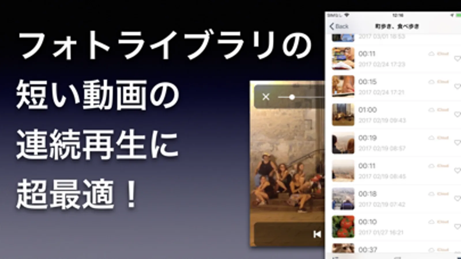 ・フォトライブラリ内のすべての動画、iCloud写真共有のアルバムも自動再生可能。