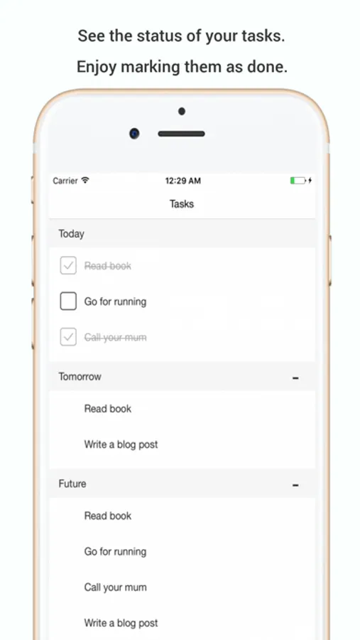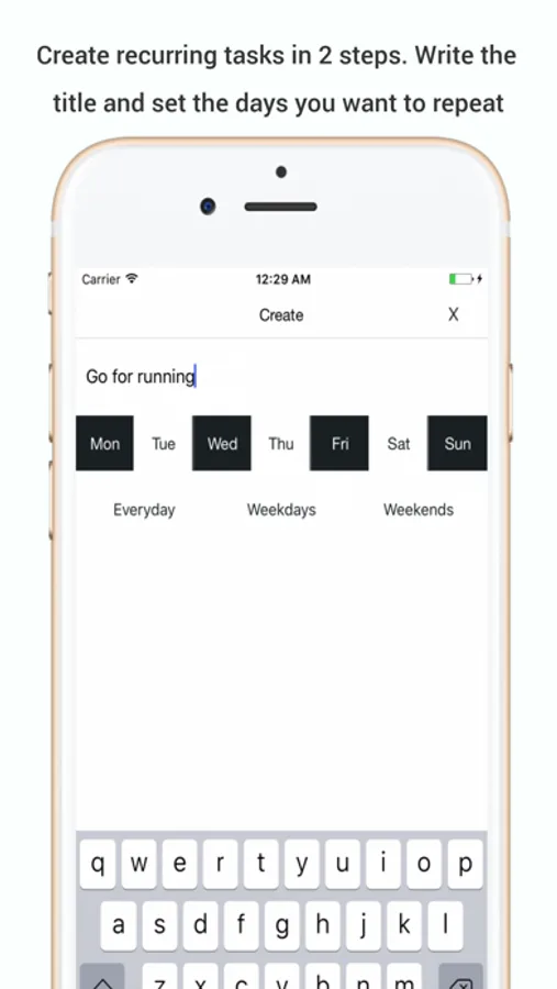 Tasks like reading book everyday, going to gym for every second day, calling your mum on every sunday. It's a habit checker for repeating tasks.