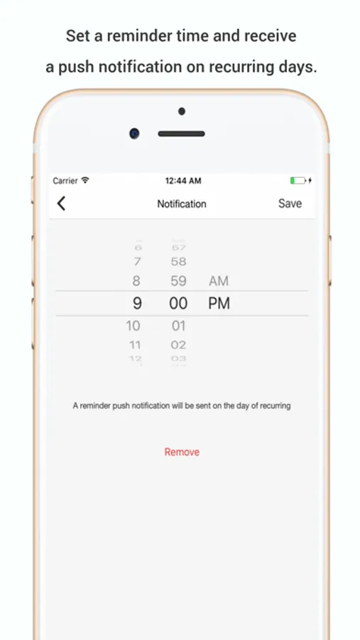 Set a time to receive a reminder push notification if you want and application will send you a notification on recurring days.