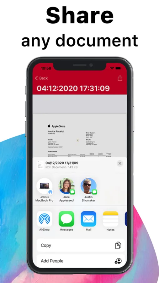 - Just scan any document and tap the "Share" button. You can send scanned documents via email, export to Photos or open in any 3rd party application. With ScanPlus you can also print your documents.