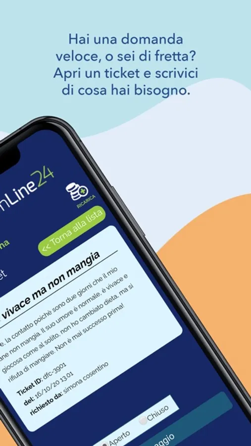 Inoltre, tramite l’area messaggi puoi aprire un ticket di assistenza per richiedere consigli non urgenti e attendere la risposta di un veterinario qualificato.