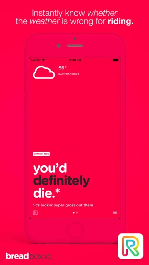 Just one tap away! Open up RIDE OR DIE and instantly know "whether" the current "weather" conditions are comfortable for a motorcycle or bike ride.