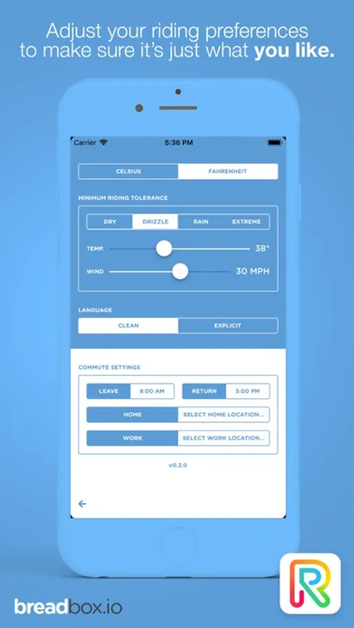 Choose what types of weather in which you prefer riding by adjusting your settings.