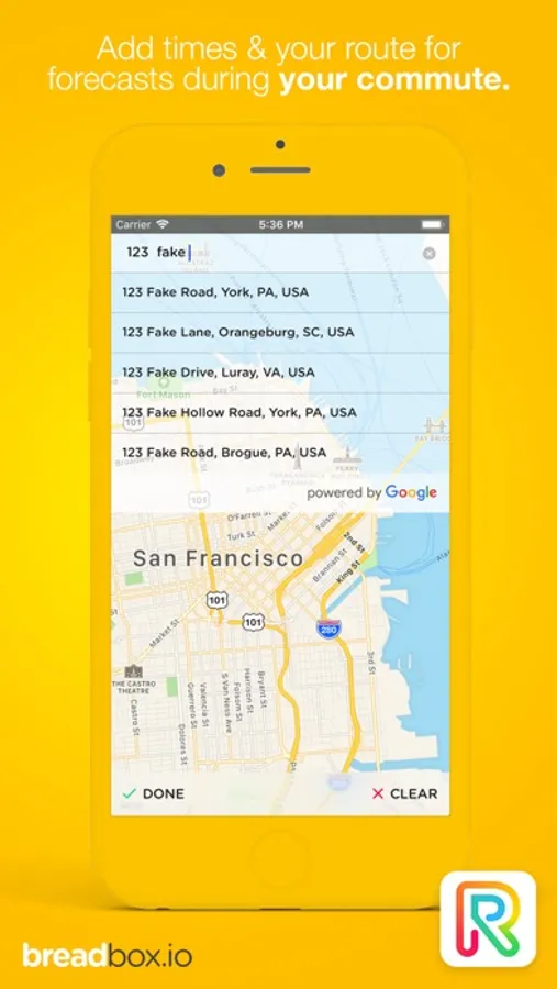 Swipe left and right to switch between "Current Mode" and "Commute Mode." In Commute Mode, RIDE OR DIE will utilize your commute times and your home/work locations to estimate "whether" the "weather" will match your riding preferences when you're leaving for and returning home from work.