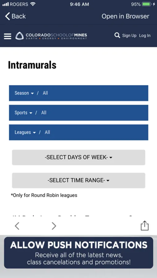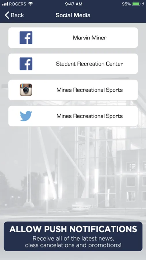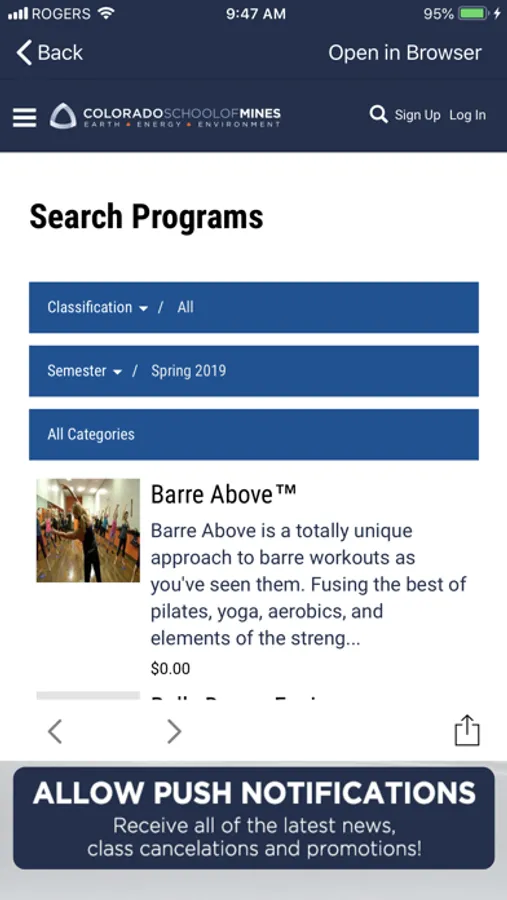 This app is the official app for Colorado School of Mines Recreational Sports. Find out about our programs, including intramural and club sports, outdoor trips and rentals, and group fitness classes. Check out our building hours, open swim times, climbing wall hours as well as get notifications on closures, special events and more!