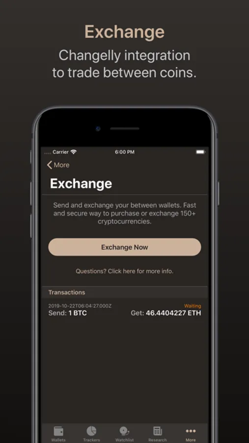 This gorgeous app was crafted to be simple while giving you great power to learn, track, and exchange coins with the new Changelly integration.