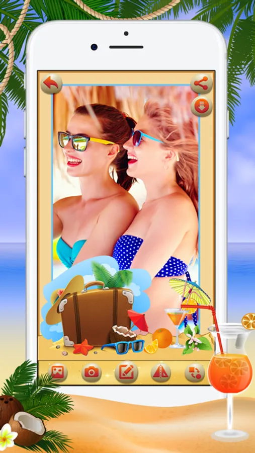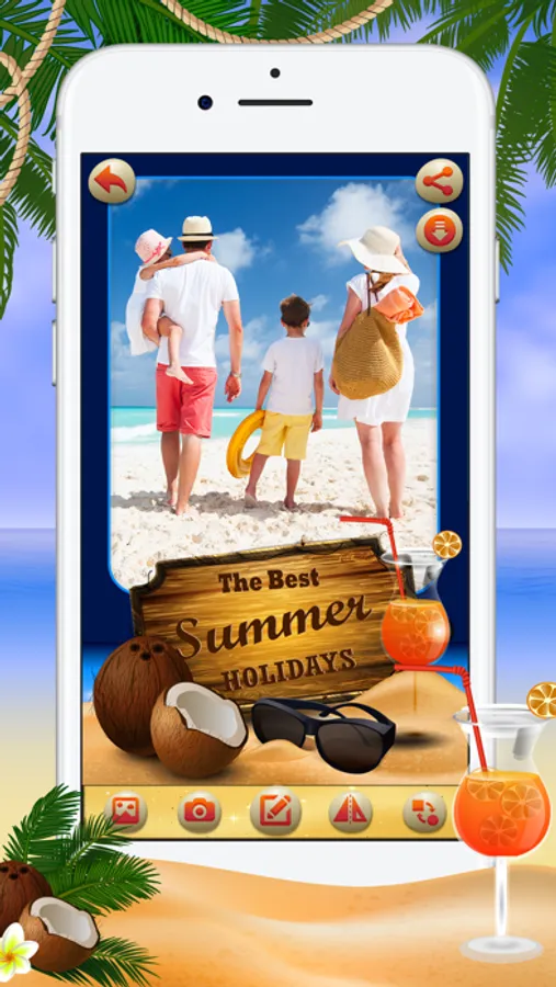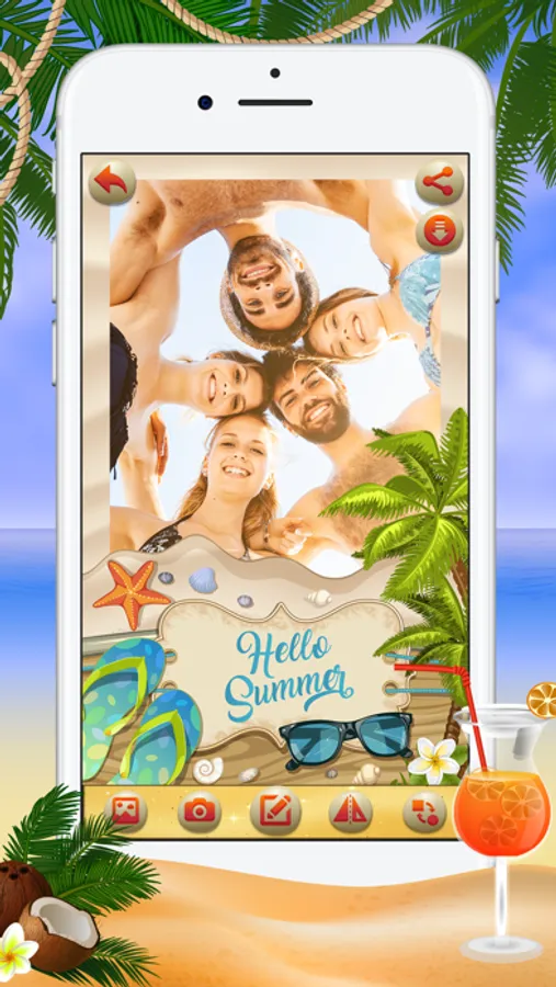 stickers! Cute palm trees, the Sun, summer cocktails, sandy beaches and other summer motives will look great on your summer selfies, for sure! Check out our amazing free application and start the photo mania now! Don't forget that all your cute summer photos can be either stored on your phone and used as summer wallpapers or shared with all your friends on major popular social networks out there, so download it now and edit your pics like a professional! Get it now and have lots of photo fun on your smartphone every day!