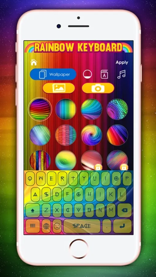 Have fun with your keyboard colors! Install this keyboard color changer app for free and set different colorful keyboard themes! Take a look at these cool keyboard designs and use this keyboard customizer to make your keyboard just the way you like it! With Rainbow Keyboard Color Changer – Themes & Skins you can have a cute and colorful emoji keyboard instantly! Download now and you'll fall in love with these beautiful keyboard themes inspired with rainbow colors.