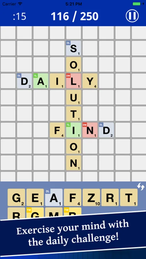 To play, drag the letter tiles onto the board to make words. Spell longer words to gain bonus points, and use bonus tiles strategically to boost your score.