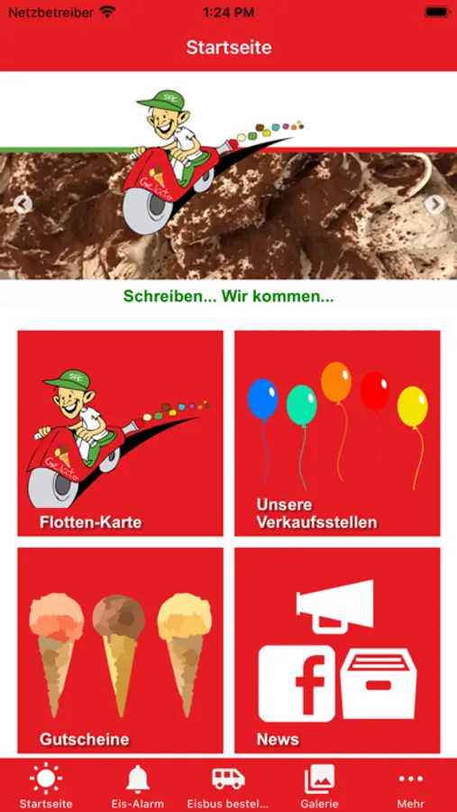 Mit einer eigenen App können wir Euch jetzt über Aktuelles schnell informieren, Gutscheine verteilen und GANZ wichtig ist unsere Flotten-Karte mit der Ihr immer genau wisst wo und wann unsere Eis-Flotte unterwegs ist!