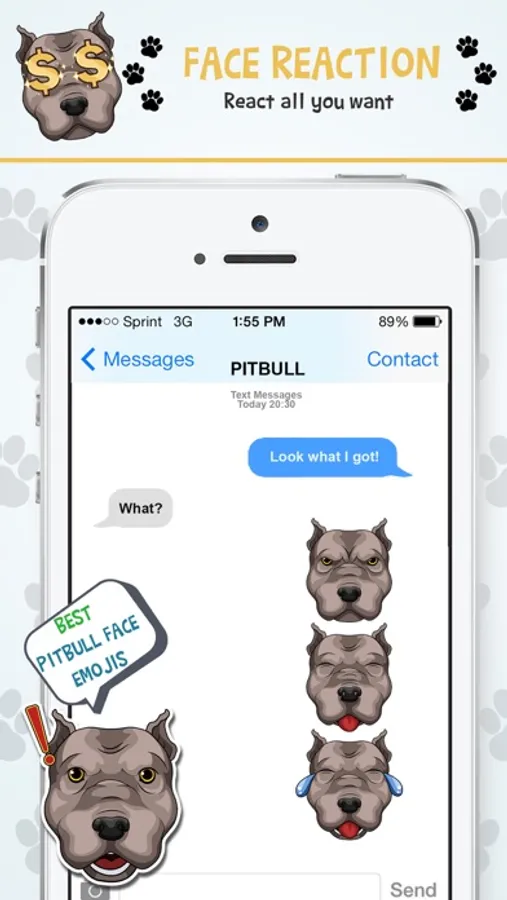 Express yourself with sticker pack of Pit Bull emojis! Works with Snapchat, WhatsApp, iMessages and wherever else you chat.