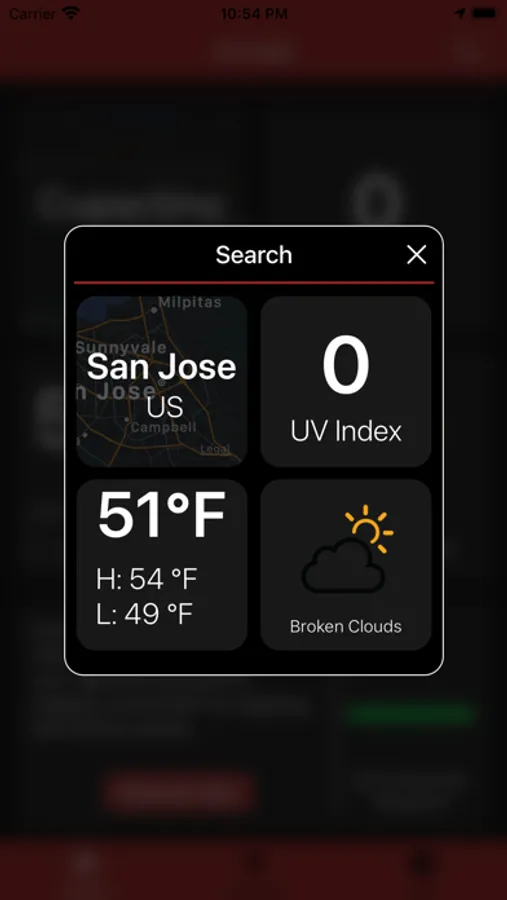 UV Safe also provides all essential information to plan your next outdoor trip, including the UV index, and current, high, and low temperatures in the search popup.