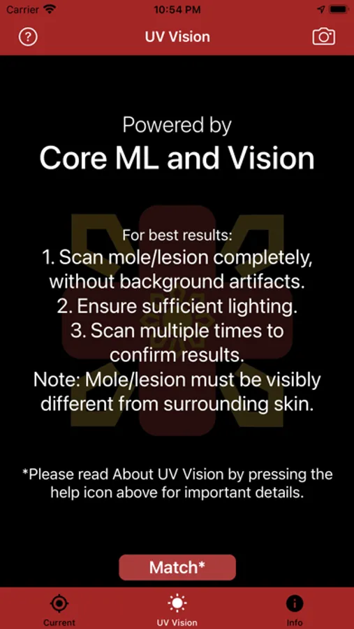 Introducing UV Vision, an advanced way to detect skin cancer through machine learning and computer vision. Powered by Apple's Core ML and Vision frameworks, UV Vision continually improves its accuracy as more images are trained.