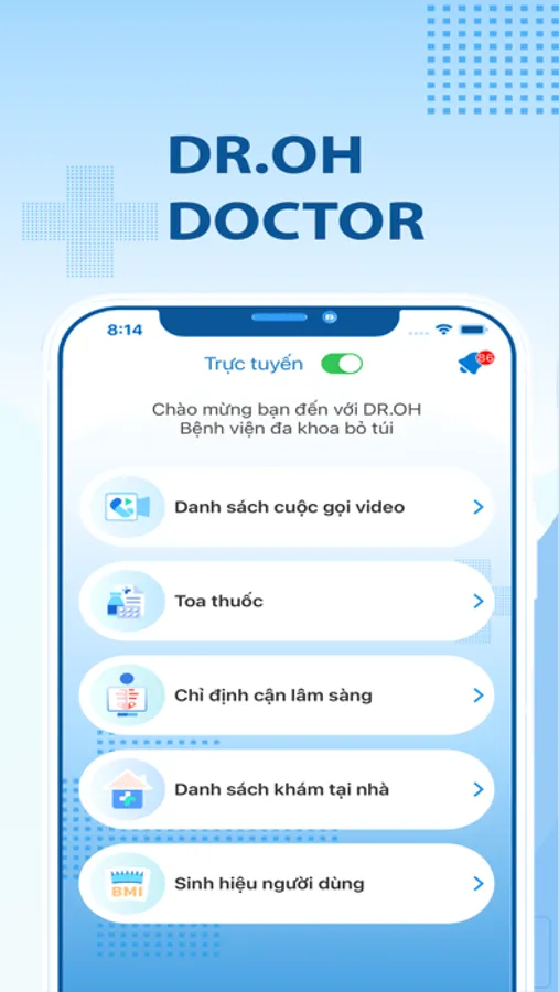 DROH - BỆNH VIỆN ĐA KHOA BỎ TÚI là ứng dụng chăm sóc sức khoẻ toàn diện. Các tính năng Video Call, Chat và Trả lời câu hỏi cho bệnh nhân ngay trên ứng dụng di động.