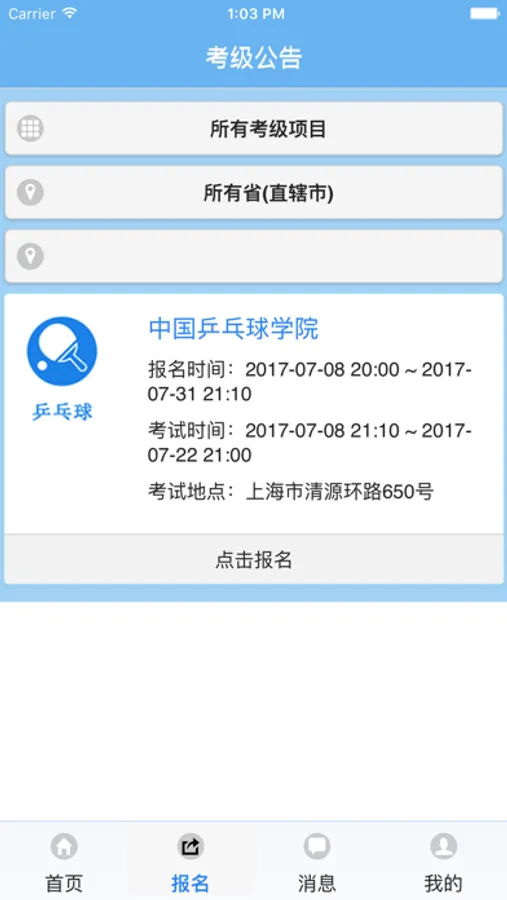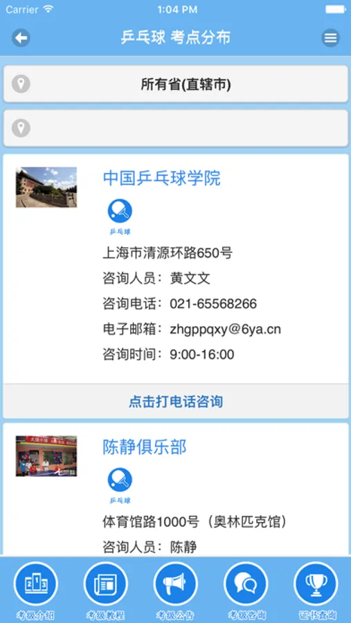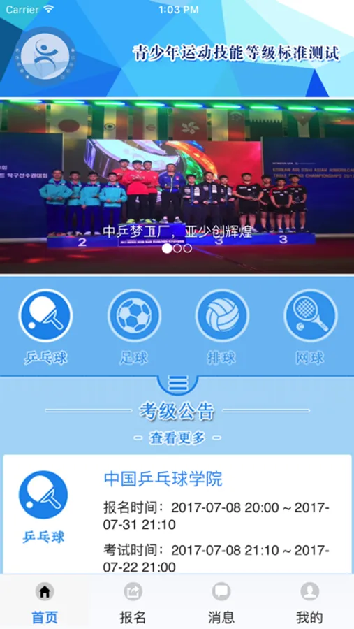 青少年运动技能等级标准测试 包括在线报名、证书查询、考级咨询、考点查询等。