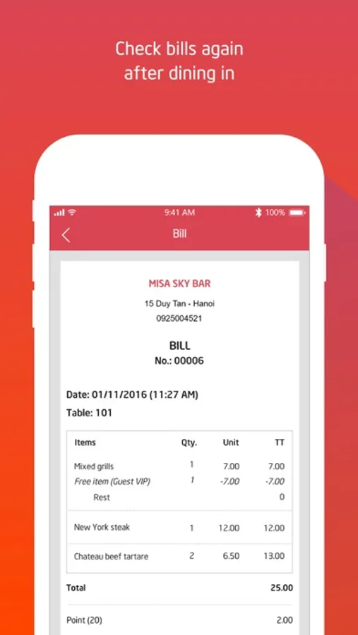 • Save all bills on 5Food so you can easily check them again when needed