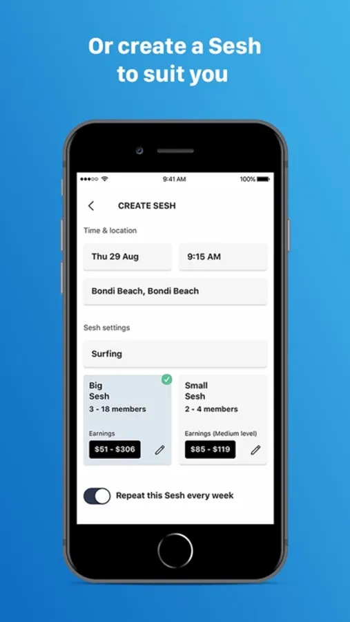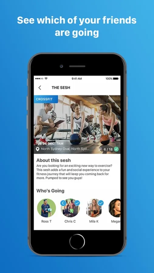 Tailor your own profile to connect with fitness professionals and other like-minded fitness enthusiasts. Send and receive Sesh invites with your friends to keep each other on track to smash your fitness goals.