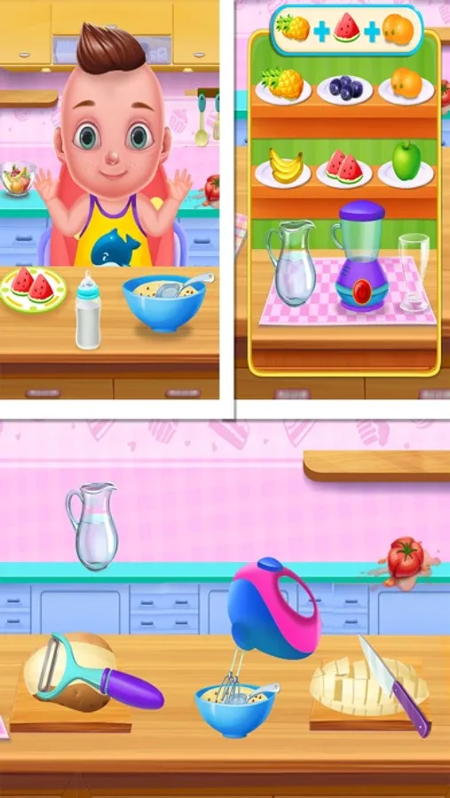 The baby is hungry! Prepare a yummy supper and ffed them!