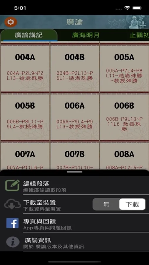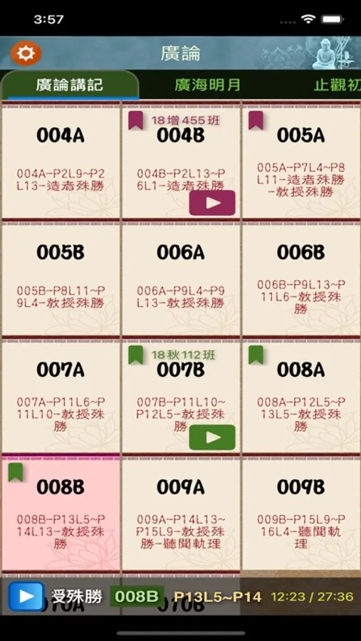 『菩提道次第廣論』是宗喀巴大師最為重要的著作之一,主要依據阿底峽尊者的『菩提道燈論』而成。這本道次第從依止善知識及思惟暇滿人生之道前基礎開始,經過念死無常,思惟惡趣苦,思維業果等思惟共下士道修習,再經過思惟四諦,十二因緣的共中士道修習,依次第到達菩提心與止觀的上士道。這部論著涵蓋佛法三藏十二部,開顯自文殊菩薩,彌勒菩薩,經龍樹菩薩與無著菩薩二軌傳承下來的深見與廣行二門修行精要,並且特別標出了出離心,菩提心和空正見三種心要。
