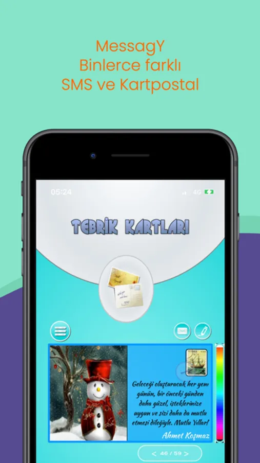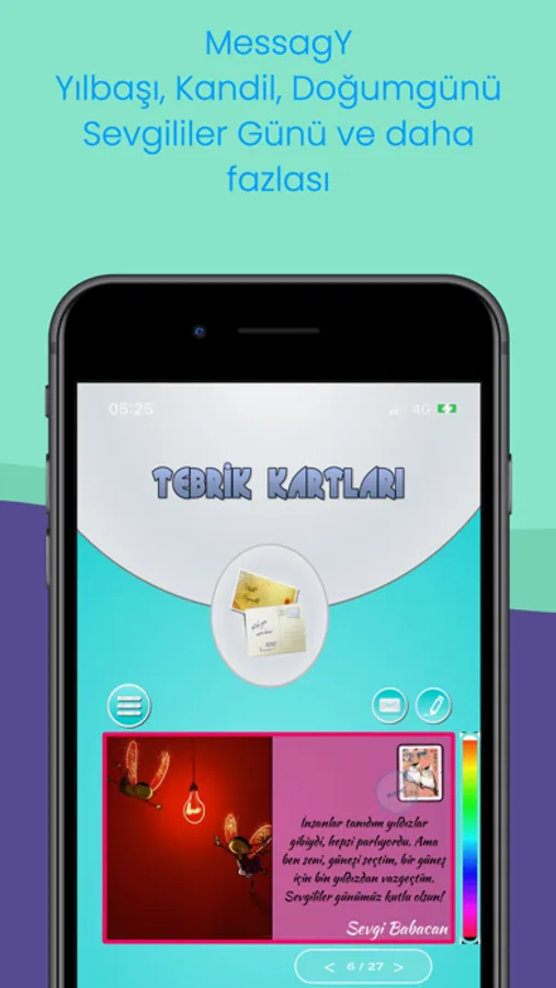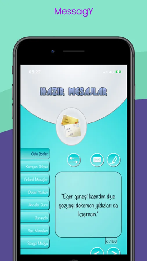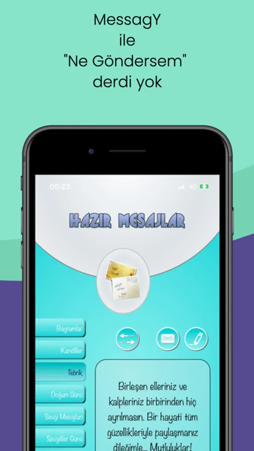 Messagy ile kime ne göndersem, doğumgününde ne yazsam, nasıl tebrik etsem, nasıl özür dilesem, güzel bir kutlama mesajı nasıl yazabilirim, sevdiklerimin bayramını, kandilini nasıl güzel kutlarım, sosyal ağ iletilerime ilginç ne yazabilirim derdine son. Binlerce birbirinden güzel hazır mesaj, ileti, sms ücretsiz uygulamamızda sizi bekliyor.