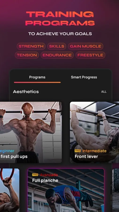 Start training Calisthenics today! There is content for all levels, so you don't need to have practiced calisthenics or bodyweight training before.