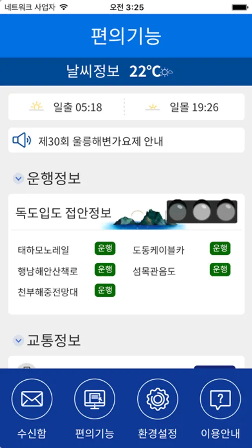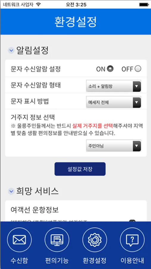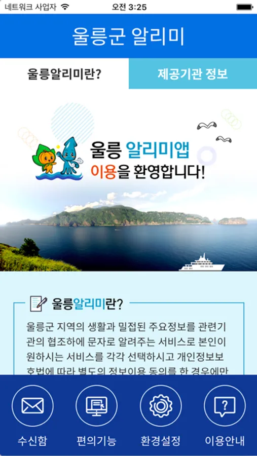 울릉군 지역의 생활과 밀접된 주요정보를 관련기관의 협조하에 문자로 알려주는 서비스입니다.