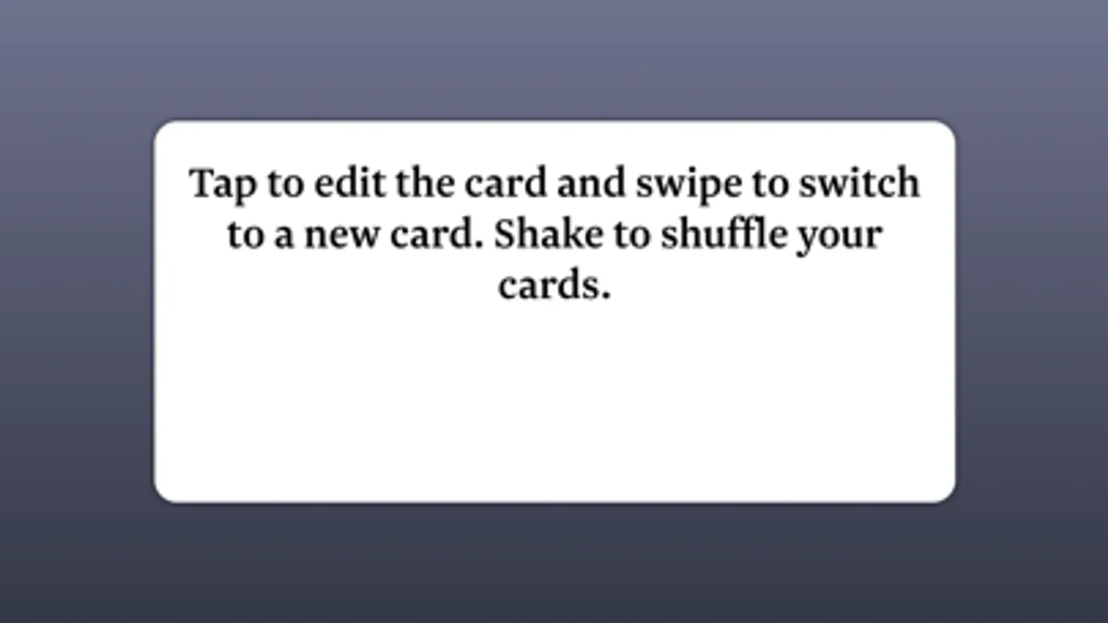 Beautifully crafted animations guide manipulation of your ideas - in the same way as a real deck of cards. Shake the device to shuffle your cards, swipe on a card to dismiss it, and even share images of them to your contacts.