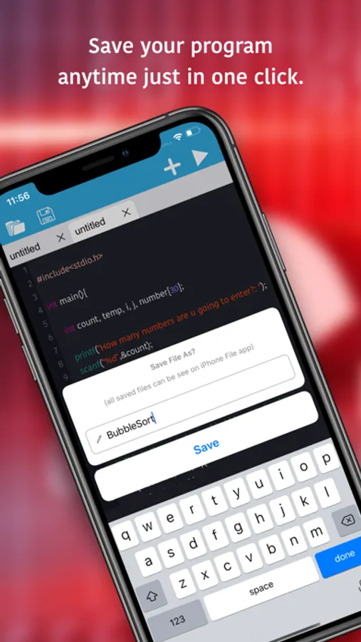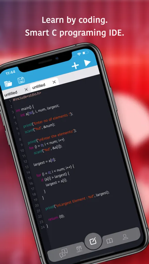 Intelligent C IDE with syntax recognition and auto text formatting and more awesome features are available.