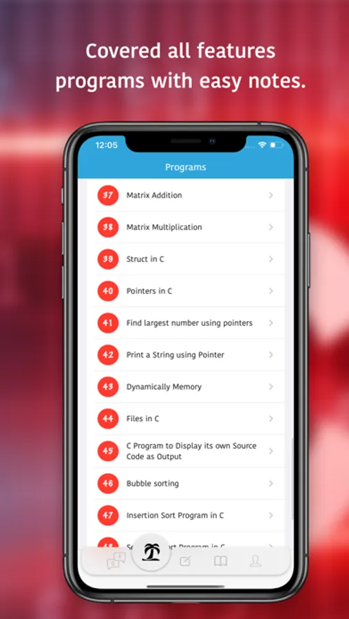 A full offline Tutorial and Programs, and IDE with syntax recognition and auto formatting text with other incredible feature to make our customer happy.