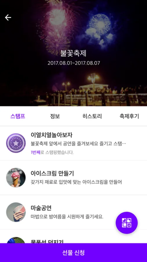 After collecting all the stamps, you can easily receive the gift at home by sending the recipient info and pressing the gift application button in the 'festival stamp tour app' instead of waiting in a long line to receive the gift.