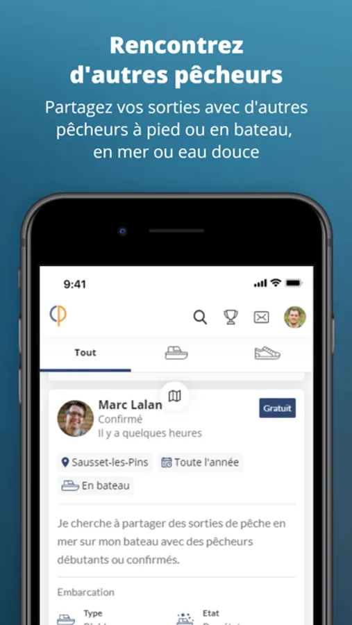 Venez partager votre passion avec d'autres pêcheurs de votre région. Vous souhaitez rencontrer d’autres pêcheurs : recherchez ou proposez des sorties.