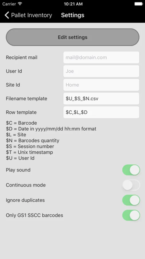 By scanning barcodes in the correct format only, the app quickly capture all pallets in the warehouse and share the result via a CSV file attached to an email.