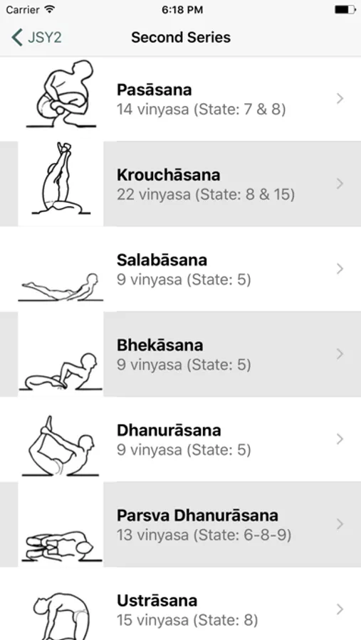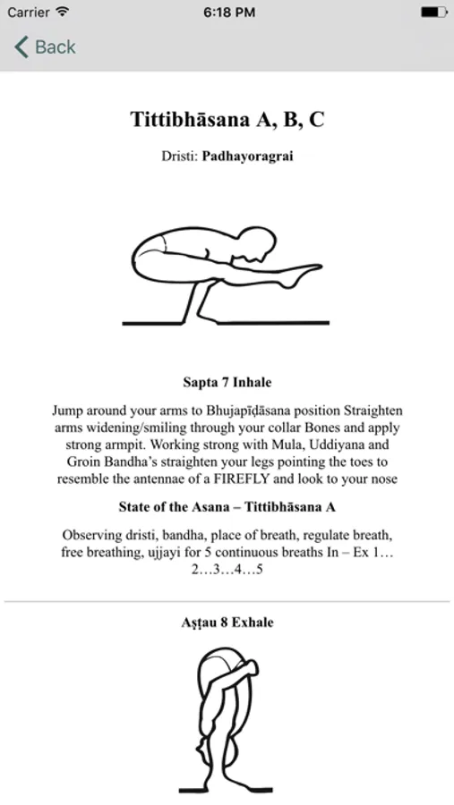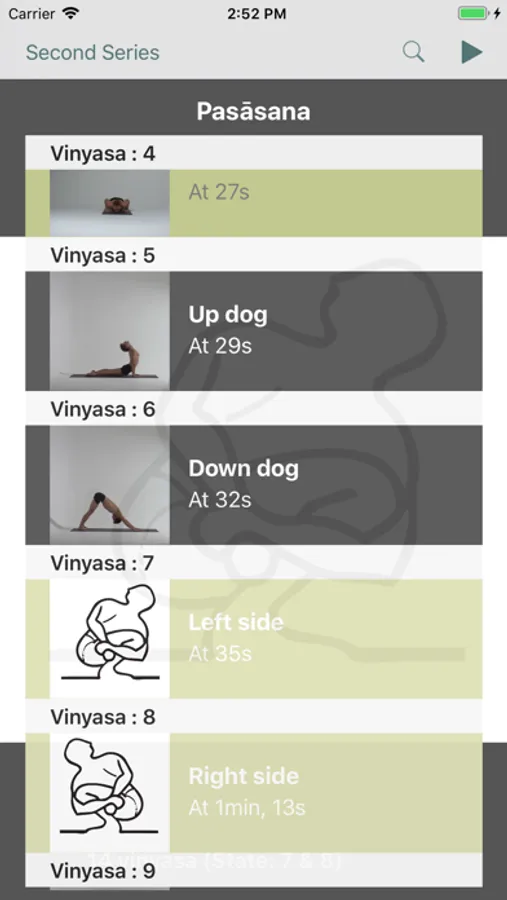 - ** NEW ** Asana Quick Review: Quickly review the Vinyasa for each asana at the touch of a button. Not sure where each Vinyasa lie then this new feature will allow you to quickly scroll through and see where each one i, along with a brief instruction to keep your count on track*