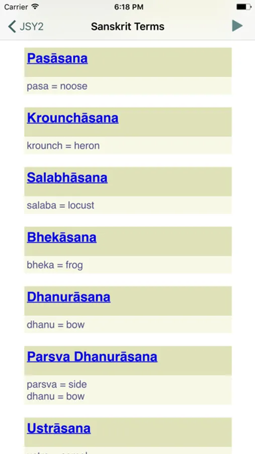 - Sanskrit numbers and terms covering the Asanas from Second Series