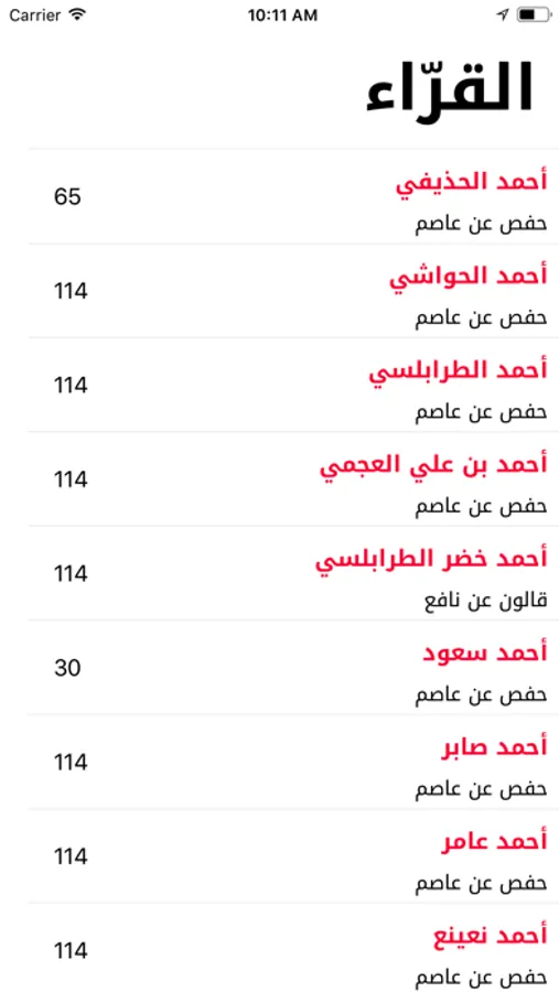 يعرض التطبيق العديد من القراء والقراءات