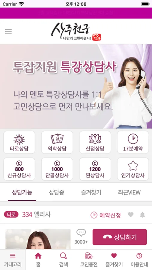 - 앱에서 선생님 상담하기 버튼 클릭 시 ARS에서 선생님 선택 버튼 누름 없이 해당 선생님과 바로 연결되어 운세상담이 가능합니다.