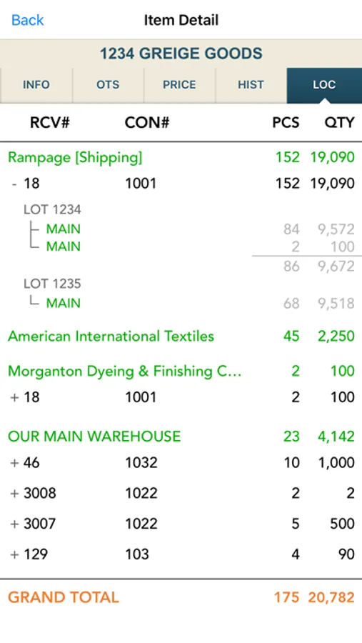 • Inventory lookup with live open-to-sell and incoming contracts detail