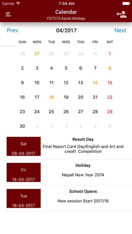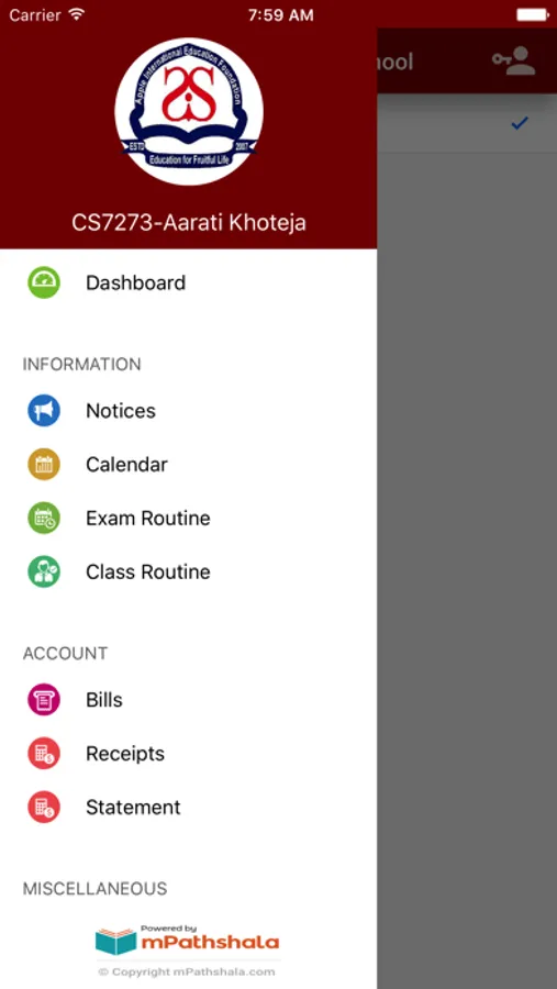Parents can now view information maintained by the school about their children through the app. This information includes: class/exam routines, school calendar, homework, attendance records, progress reports, bills, receipts, etc. They can also send message to the school as well as receive regular communication from the school.