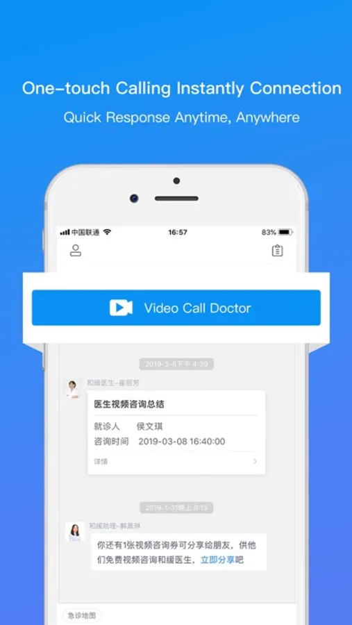 The platform has 2000+ renowned experts from top hospitals. You can book an online video consultation with experts through the APP to get professional medical advice, no need to travel and save your money. Professional medical assistants will assist you during the consultation so that you can find authoritative experts and experience high quality of healthcare service.
