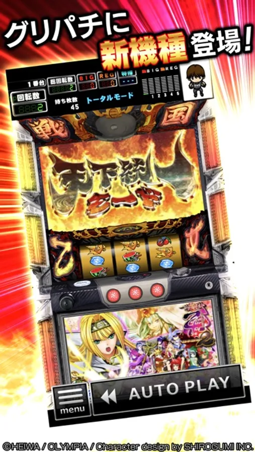 人気シリーズパチスロ第三弾「戦国乙女2~深淵に輝く気高き将星~」がグリパチに登場です!大画面「ツイン液晶」を再現した液晶演出はもちろん、新キャラクター『立花ドウセツ』『細川ユウサイ』を含め豪華声優陣のキャラクターボイスや楽曲も全て搭載!「真乙女ボーナス」に当選すれば衝撃のストーリーを順次解放、乙女史上最高に作り込まれた圧巻のエピソードも全話収録!