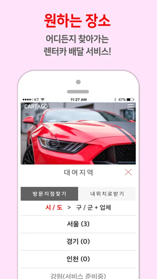 원하는 장소! 원하는 시간! 어디든지 찾아가는 배달 렌터카 서비스!